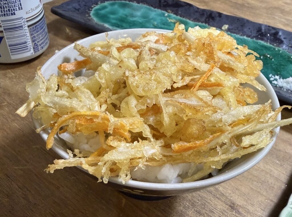 今日はいつもより野菜を細めに切ったおかげか、かき揚げが特に美味しくできました。